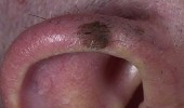 - Опухолевая базалиома представлена в виде узелков, размеры которых составляют от 0,5 см. На ощупь опухоль гладкая, ее поверхность покрыта корочками эрозии.