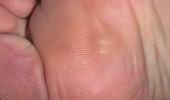 Область, на которой возникла свежая мозоль, может быть сухой, казаться шелушащейся. В этом случае поможет смягчающая кожу мазь. Утолщения на коже иногда могут вызвать боль или дискомфорт. Это происходит в том случае, если они мешают ходьбе или другой деятельности.