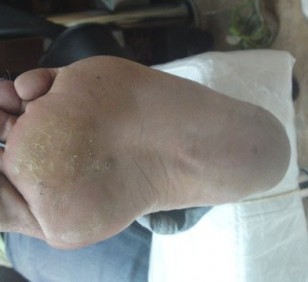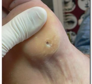 Изображение обыкновенной мозоли, которая заполнена жидкостью