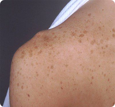 - Веснушки – мелкие коричневые пятнышки, образуются после загара, поскольку данные участки кожи более чувствительны к ультрафиолетовому излучению. Появление их обусловлено генетически. Становятся более заметными весной, а осенью и зимой осветляются. Веснушки на спине не опасны для здоровья. Если же это для вас существенный косметический дефект, тогда ухаживайте за кожей, используя отбеливающий крем, лосьон или маску, которые соответствуют вашему типу кожи.