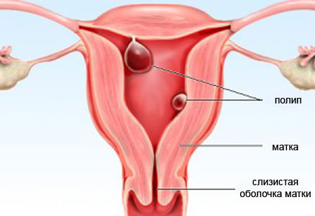 - Полипы тела матки — их часто выявляют на внутренней поверхности органа, в верхней его части. Имеют форму узелка.