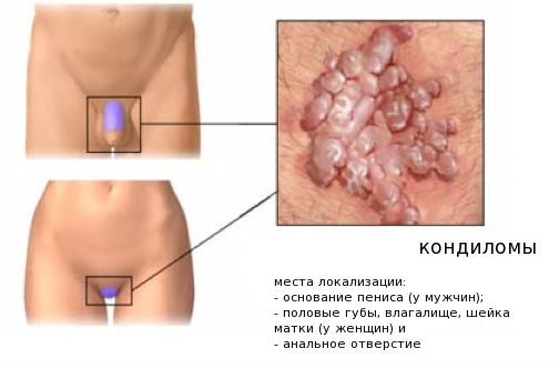 - Кондиломы (фото 2). Чаще всего образуются на половом органе и при трении о белье могут кровоточить. Именно эти наросты наиболее опасны в плане трансформации в злокачественное новообразование.